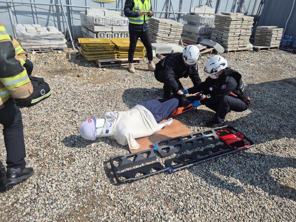 ○ 이날 훈련은 공단을 비롯해 한국철도공사, 울산북부소방서 등 50여 명이 참여했으며, 운행선 인접 작업 중 천공기 전도로 인해 열차 운행이 중지되고근로자가 부상하는 상황을 가정해 실전 모의훈련 방식으로 진행됐다.